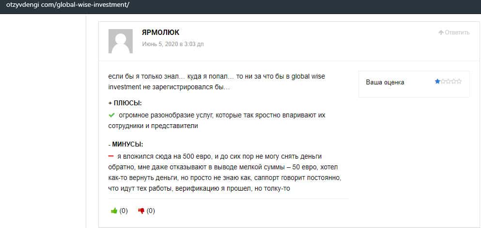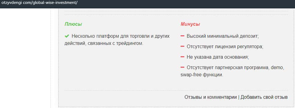 - Мнение авторитетного портала о шарлатанской конторе Глобал Вайс Инвестмент
