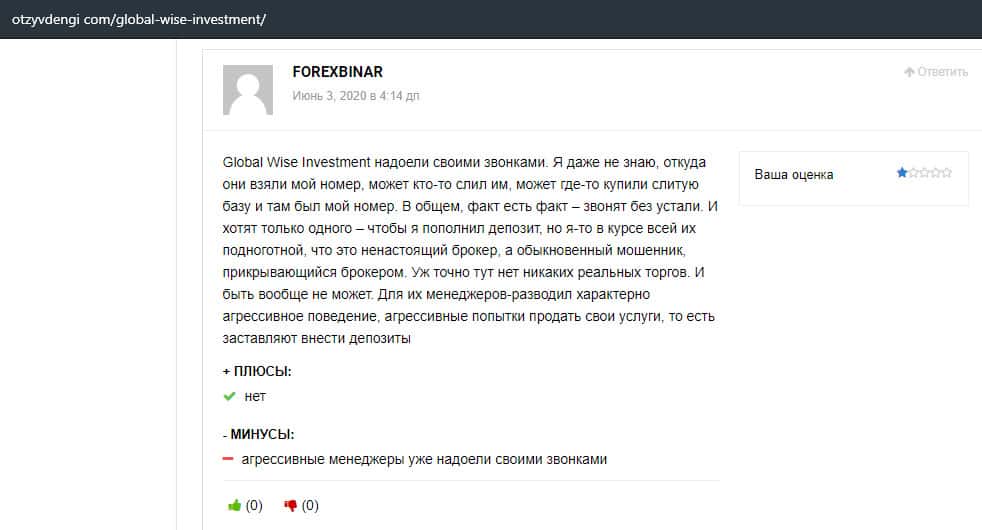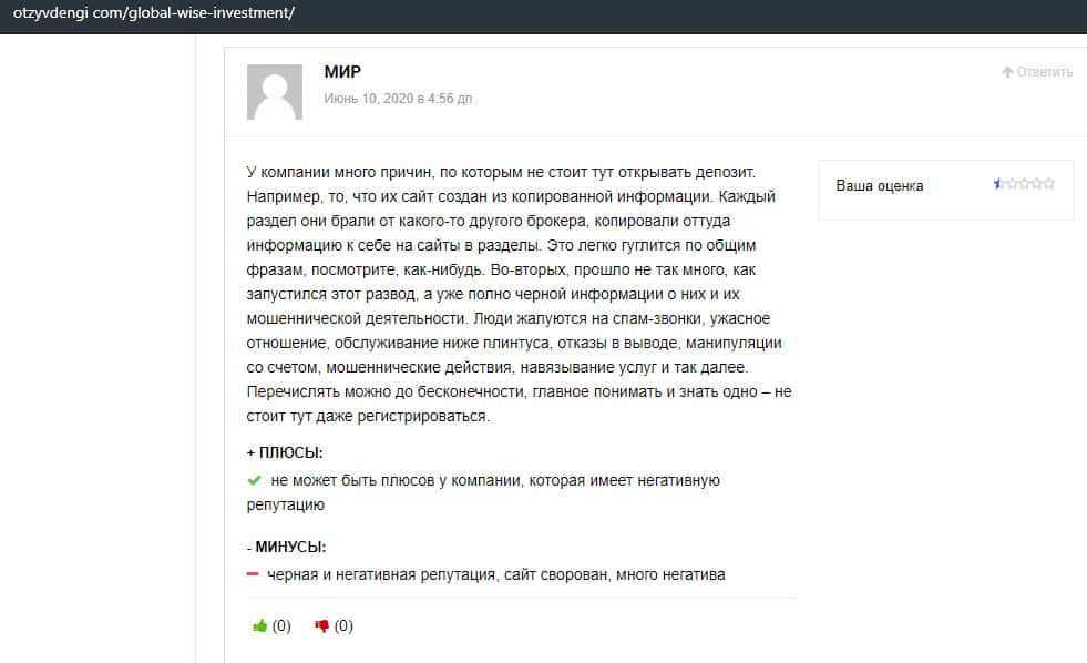 Мнение авторитетного портала о шарлатанской конторе Глобал Вайс Инвестмент