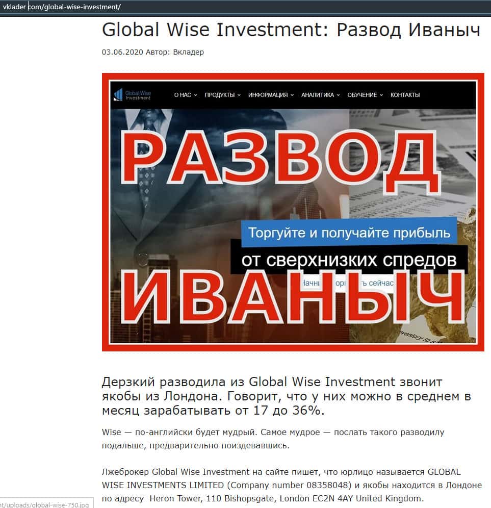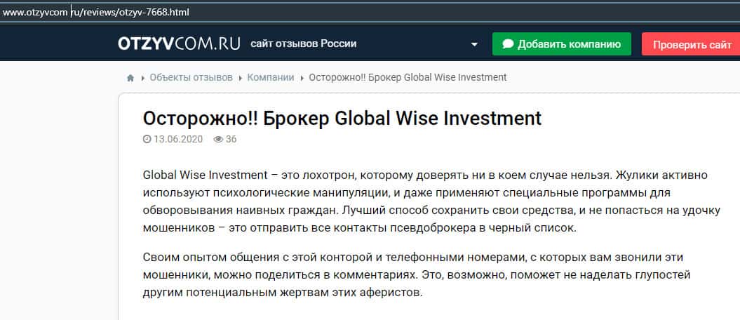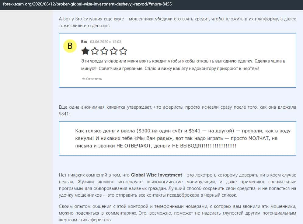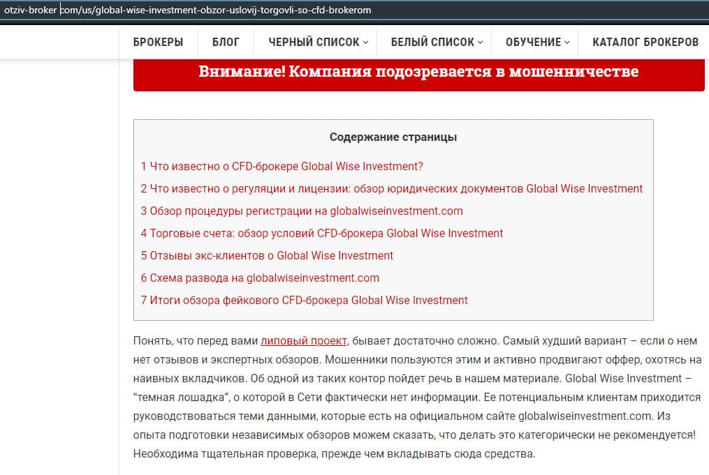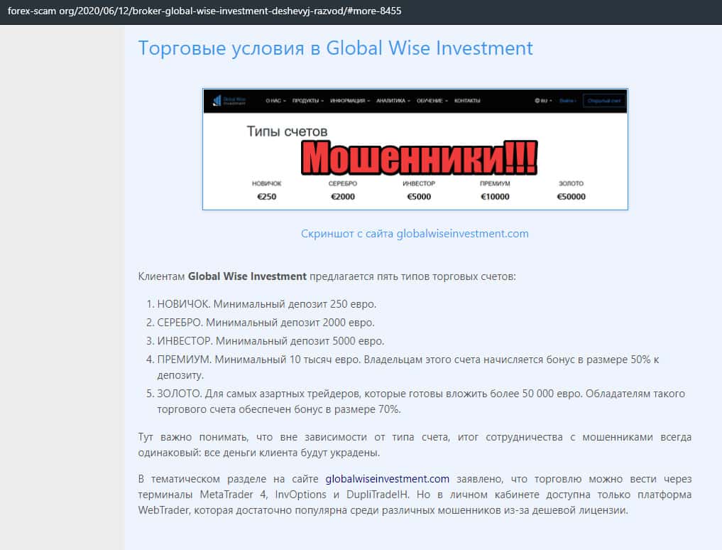 Статья-обзор о мошеннической кухне GlobalWiseInvestment