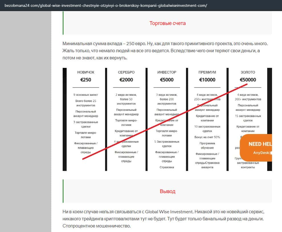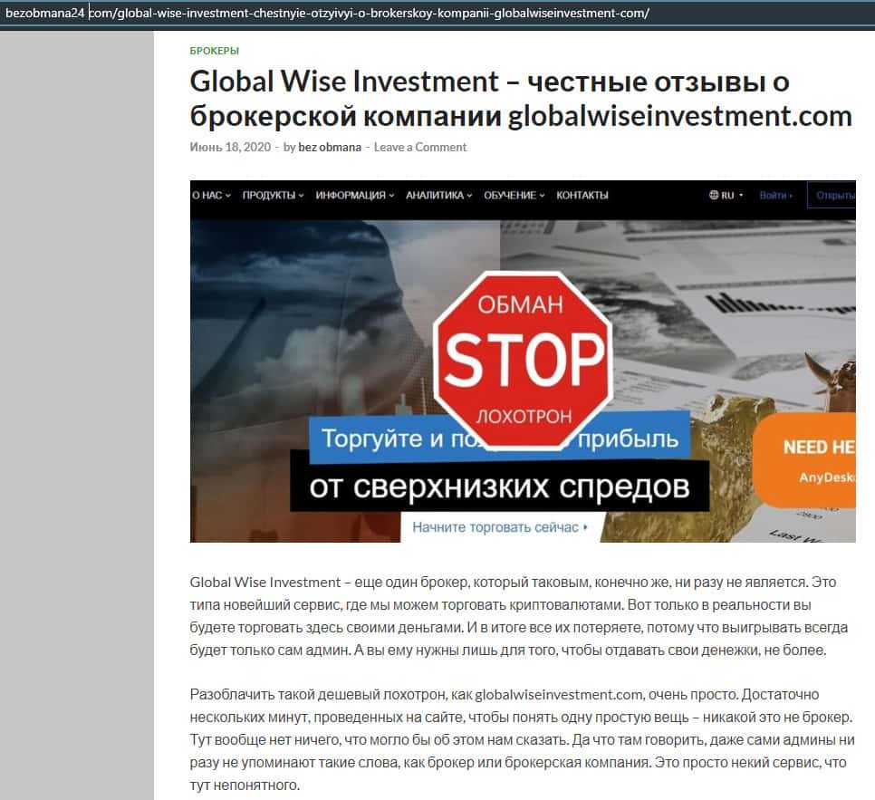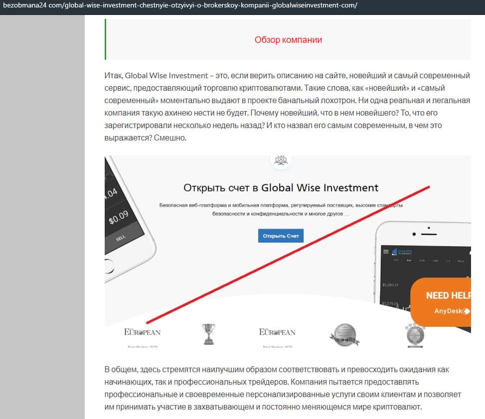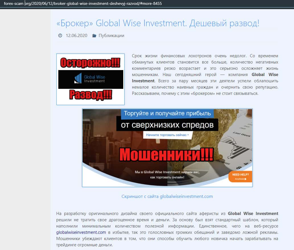 Статья-обзор о мошеннической кухне GlobalWiseInvestment