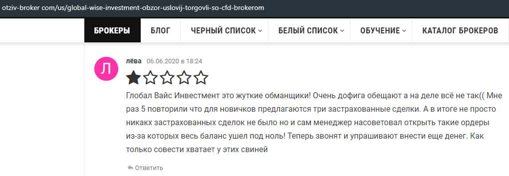 Правдивый отзыв о лохотронщиках GlobalWiseInvestment