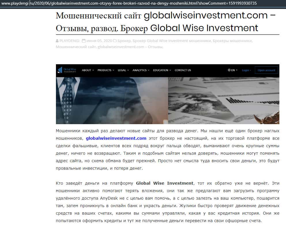 - Статья-обзор о мошеннической кухне GlobalWiseInvestment