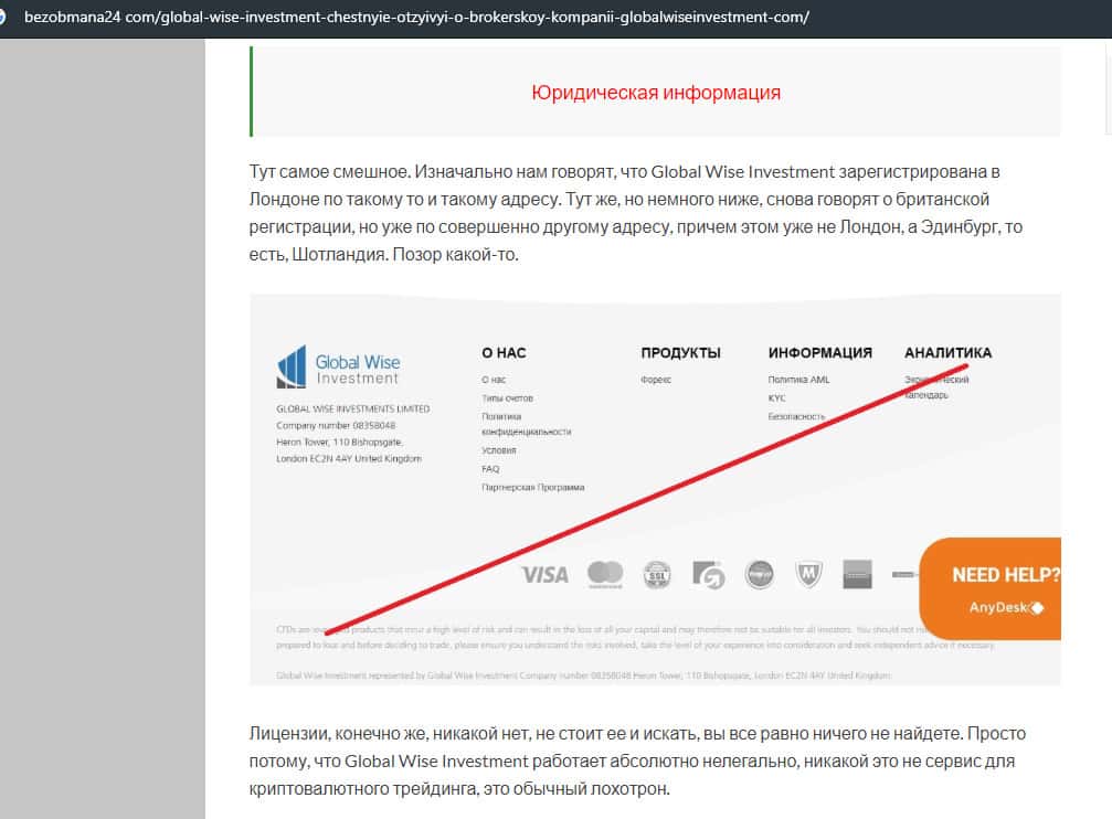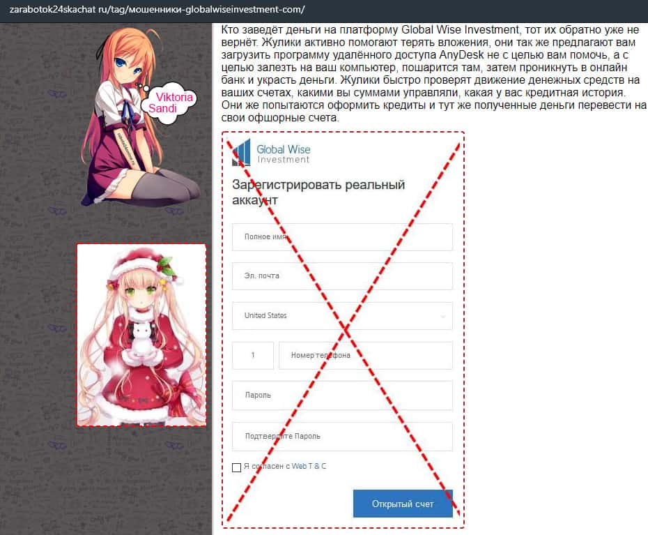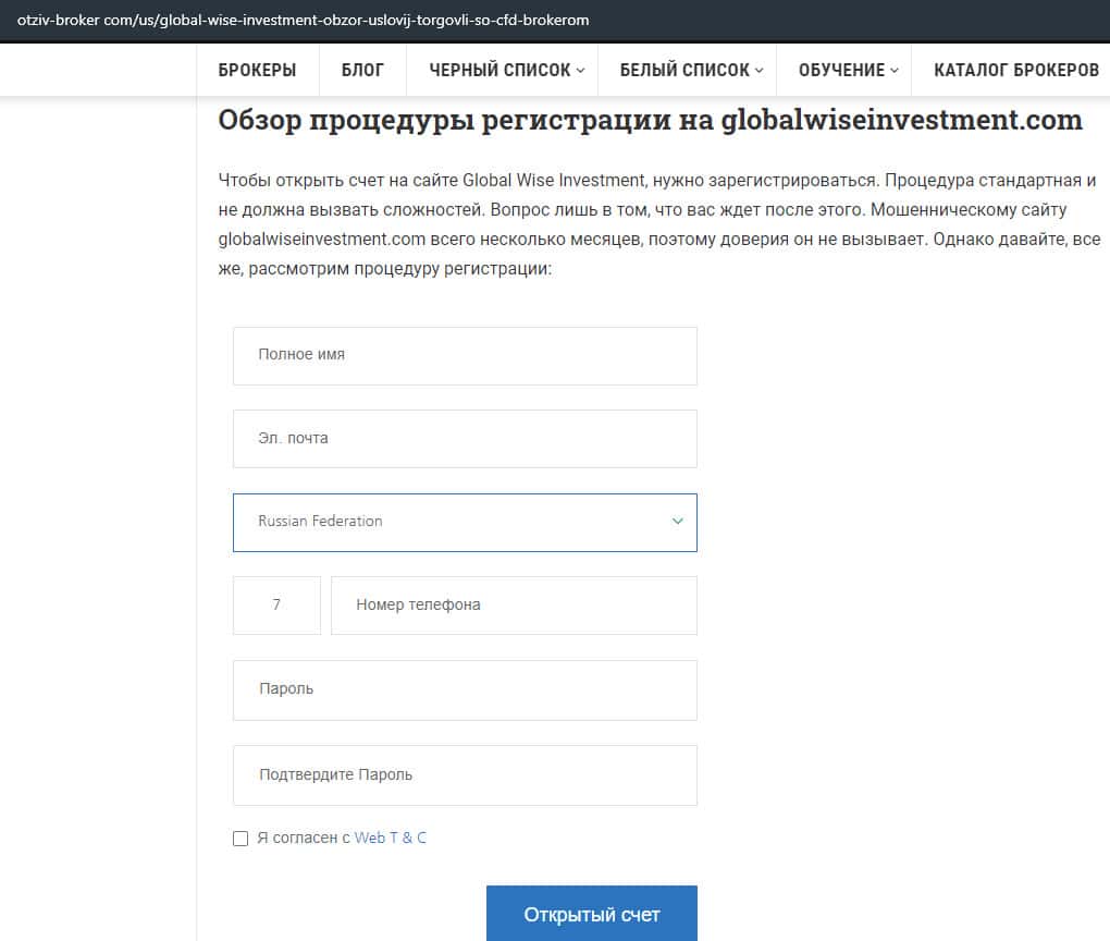 - Не стоит регистрироваться на сайте аферы GlobalWiseInvestment