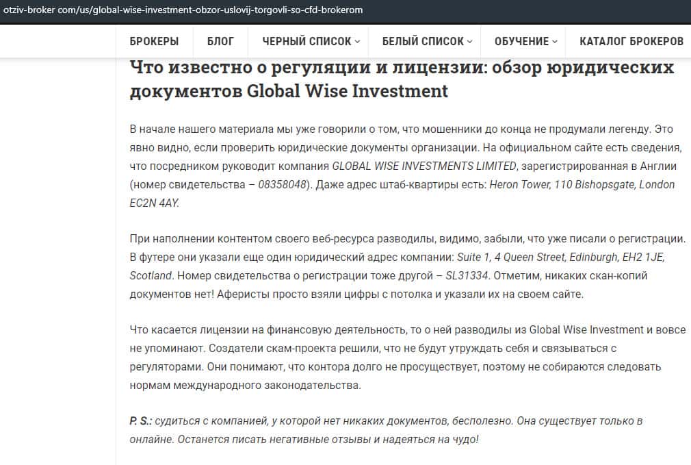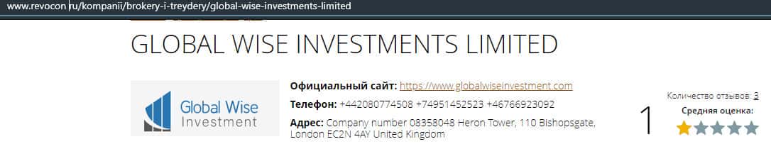 - Настоящие данные о лжеброкере GlobalWiseInvestment