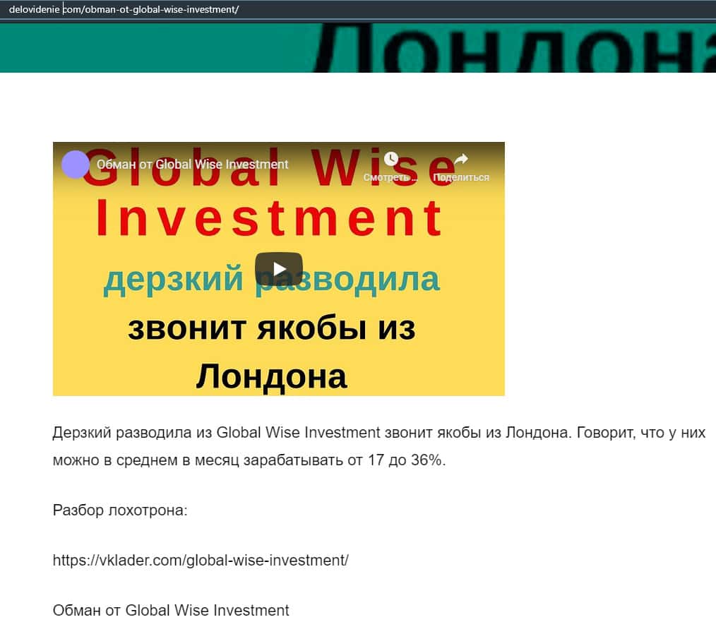 - Еще одна публикация против работы с аферой Глобал Вайс Инвестмент