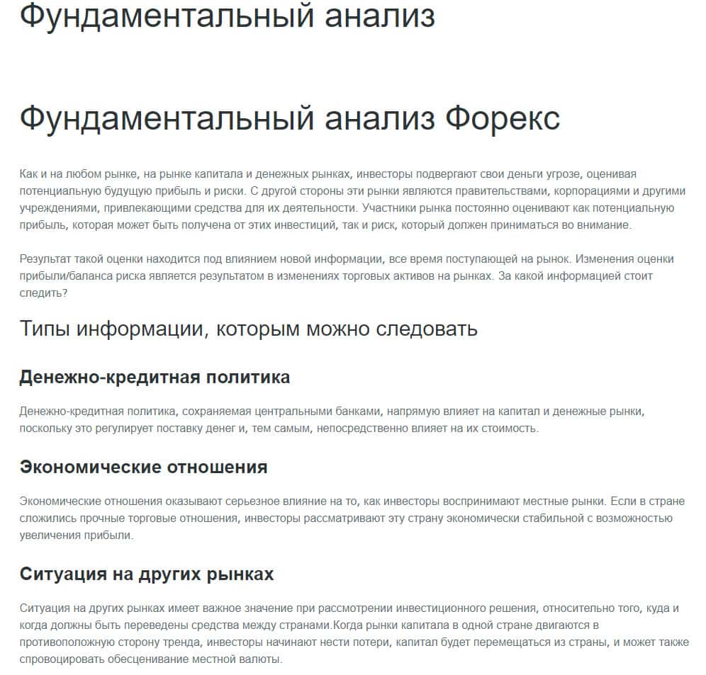 В конторе GlobalWiseInvestment также предлагают ознакомиться с фундаментальным анализом и следует отметить, что в данном разделе нет ничего кроме того, что описывается теоретическая часть всего этого процесса. Никаких набросок и примеров в данном ключе нет вообще.