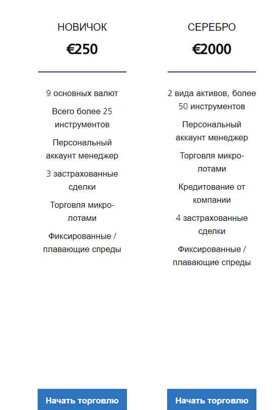 Первые на очереди два начальных счета, которые контора GlobalWiseInvestment предлагает клиентам, чтобы начать торговлю. Эти счета называются Новичек и Серебро. Открываются они в зависимости от переведенной суммы и стартует вход от 250 евро до 2000 евро и выше. Какие-никакие но это тоже деньги, которыми не хотелось бы рисковать.