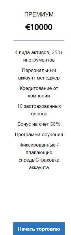 Далее представлен счет, который называется Премиум. Открытие такого счета стартует с 10 000 евро и это довольно огромные деньги. По сути здесь уже риски сумасшедшие и вряд ли, что нормальный человек переведет в шарашкину контору Глобал Вайс Инвестмент такие деньги. Так что не будьте глупцом и не связывайтесь с ними.