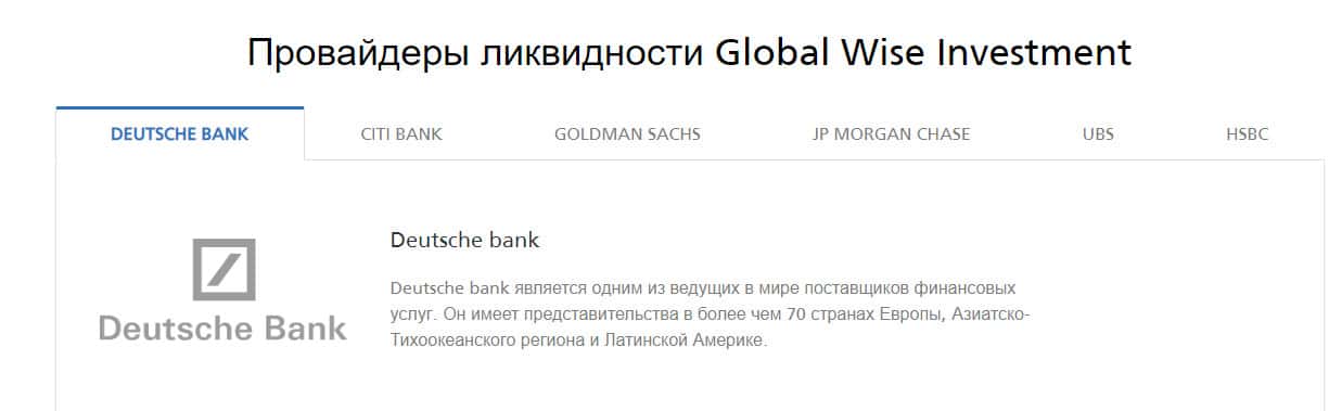 Еще есть ряд партнеров, которые лохотрон Глобал Вайс Инвестмент опубликовал на своем сайте. Они выступают в качестве провайдеров ликвидности и среди них исключительно банковские конгломераты. Знают ли они о существовании такой шарашки как GlobalWiseInvestment - это вряд ли.