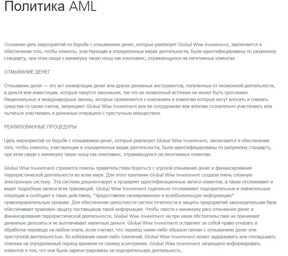 - Политика Противодействия отмывания средств в шараге GlobalWiseInvestment