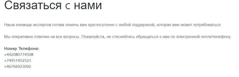 Чтобы связаться с шарлатанской конторой Глобал Вайс Инвестмент следует обратить внимание на один из разделов, где указывается несколько телефонов, по которым якобы можно к ним дозвониться. Даже если вы это сделаете, то знайте, что после пополнения вашего счета реальными деньгами, вам вряд ли кто ответит. Вот собственно эти данные: