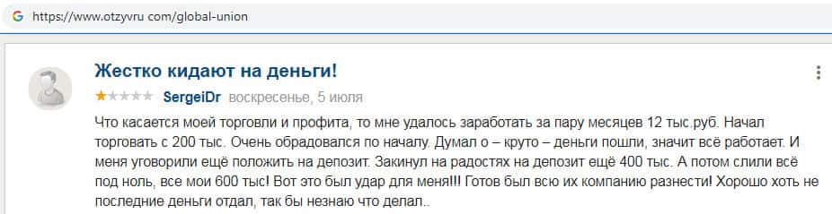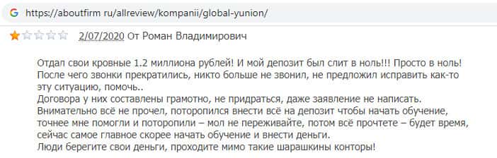 Отзывы о фейковой конторе GlobalUnion Biz, ныне присутствующие в сети