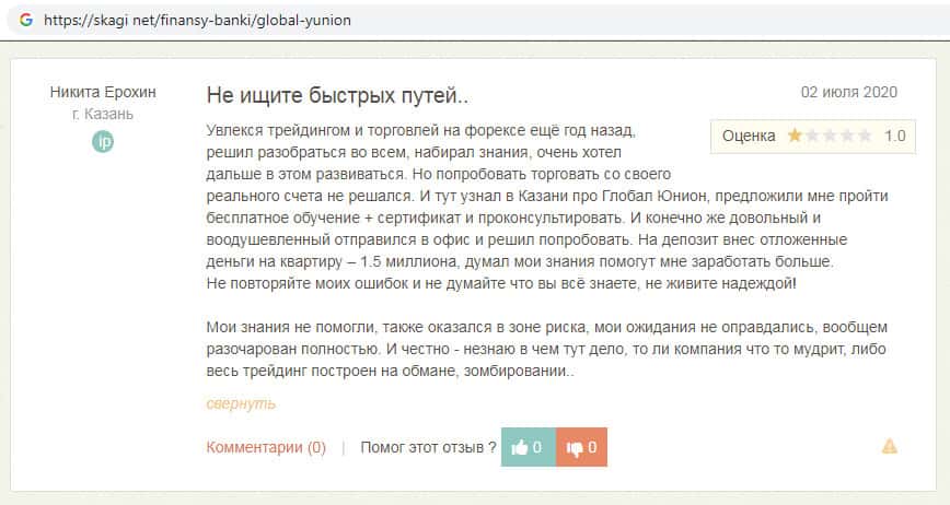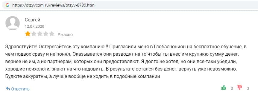 Глобал Юнион - обзоры данных аферистов на иных интернет-сервисах