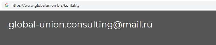 Лохотронщики GlobalUnion Biz на своем официальном интернет-ресурсе в качестве связи указывают адрес электронной почты, а именно: