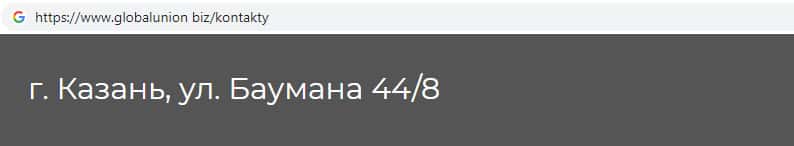Мошенники Глобал Юнион также указали адрес местонахождения главного офиса своей компании, а именно: