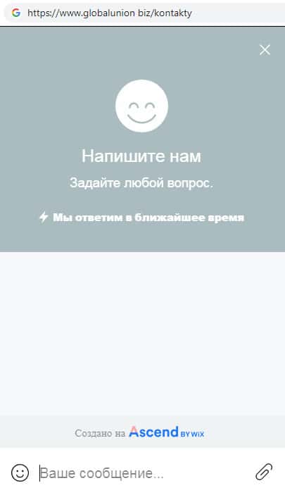 Также аферисты Глобал Юнион предоставили в качестве обратной связи онлайн-чат, при помощи которого ведут сбор данных о клиенте, фиксируя все данные на сайте.