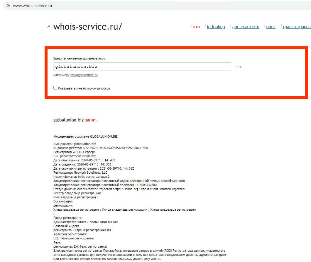 - Проверка возраста домена скам-конторы Глобал Юнион