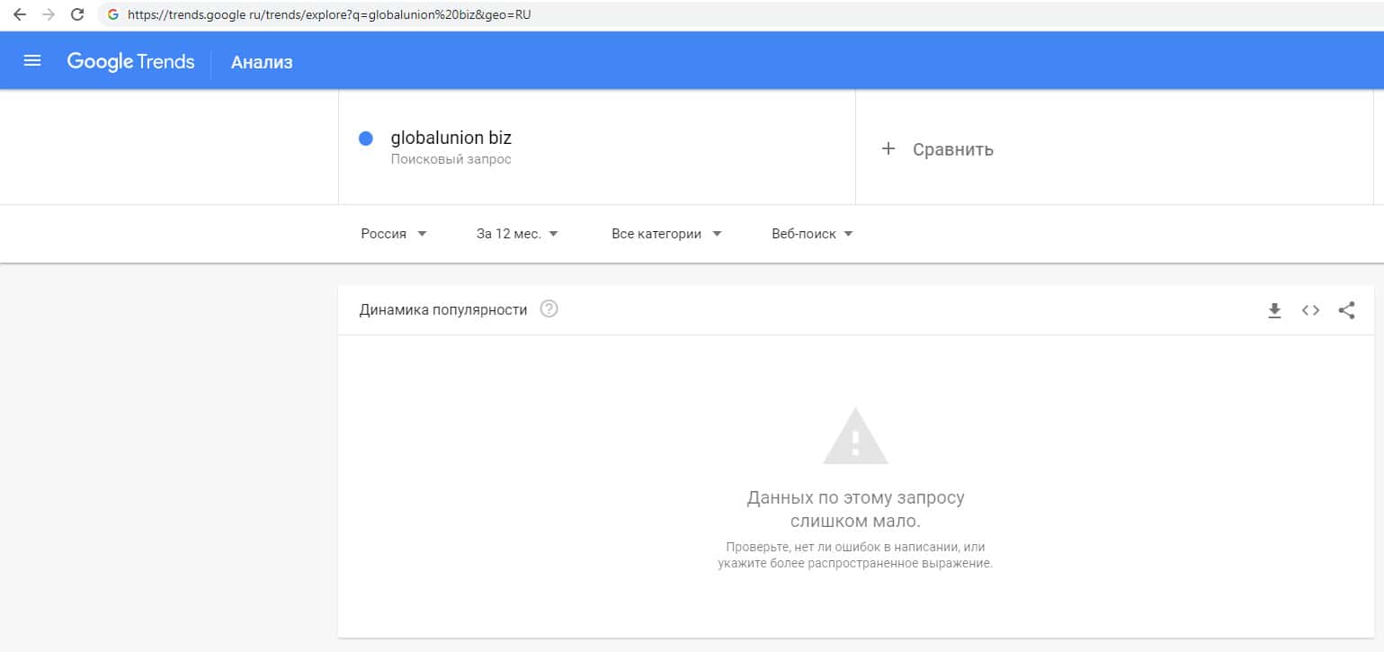 О количестве запросов по бренду названия домена без точки "globalunion biz" на Трендс Гугл Ру также нет данных.