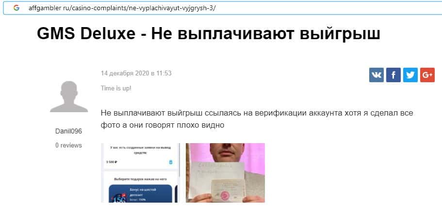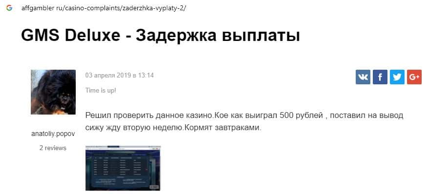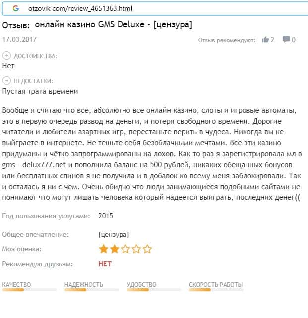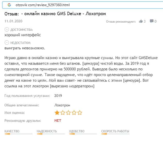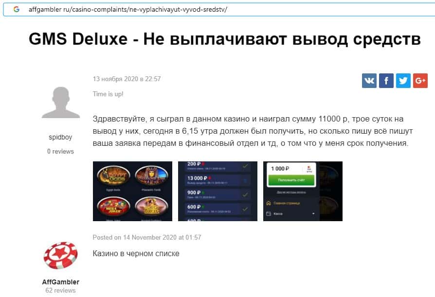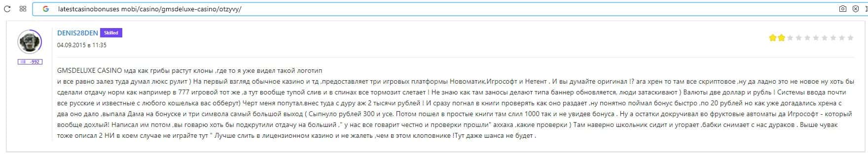 - Отзывы о скам-проекте ГМ Слотс Делюкс, ныне присутствующие в сети