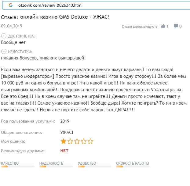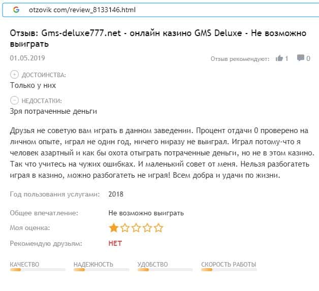 - Казино GMS Deluxe пользователи называют интернет-лохотроном