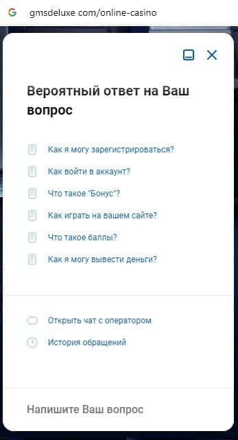 Служба технической поддержки на сайте GMS Deluxe отсутствует
