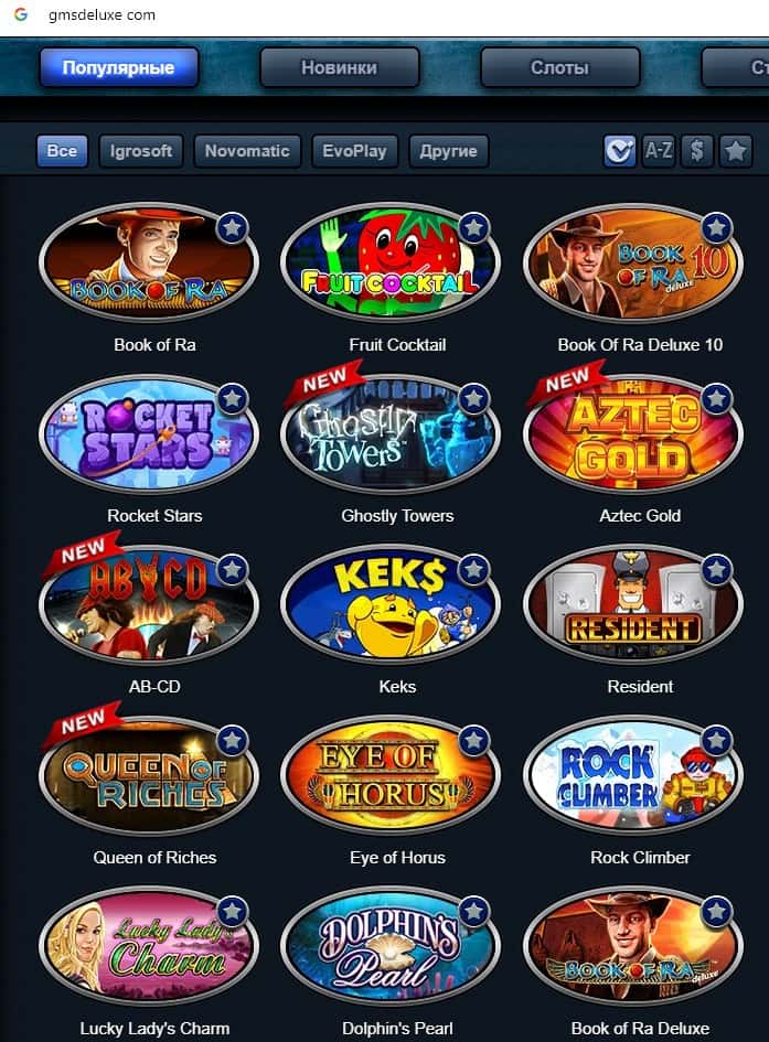 В данном разделе предлагаем увидеть скрин главной страницы веб-портала онлайн-казино ГМ Слотс Делюкс, помните о том, что проекты часто меняют название домена сайта.