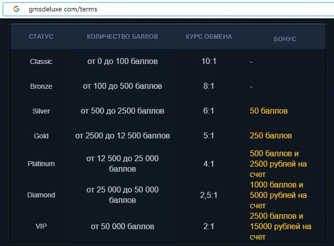 - Типы игрового счета на веб-сервисе шараги GMS Deluxe