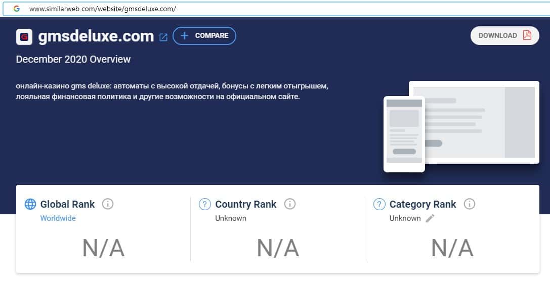 При проверке источников бренда по странам скам-организации GMS Deluxe на сайте similarweb com, информация отсутствует, что является признаком фейкового лохотрона.