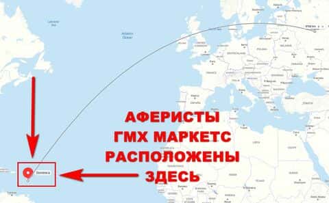 Исходя из официальных данных на сайте конторы ГМХ Маркетс, мошенническая организация расположена в Доминике, что довольно далеко от столицы Российской Федерации.
