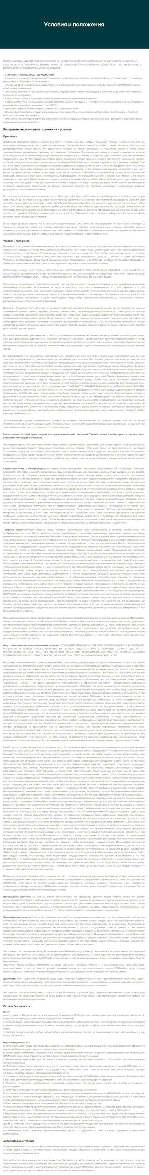 Далее вы можете ознакомиться с полной версией соглашения мошеннического форекс-брокера ГМХ Маркетс, где указываются все подводные камни их преступной деятельности.