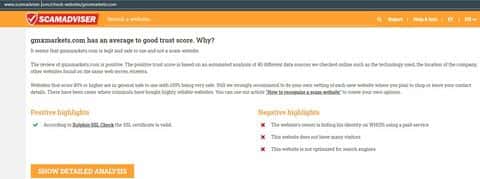 Что касается данных о конторе ГМХ Маркетс, а вернее их сайта согласно сервиса scamadviser com, то здесь они имеют множество ошибок, которые очень опасны для пользователей.