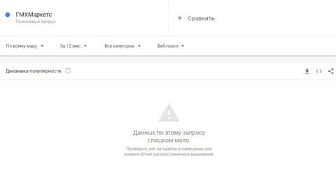 Другая ситуация и с брендом "GMXMarkets", который не набрал показов вообще, что показывает их очень низкую популярность в интернете.