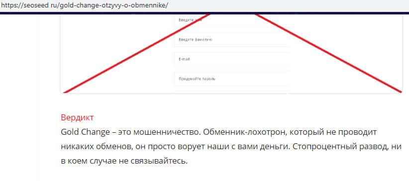 seoseed ru - веб-площадка с информацией о лохотроне Голд Чандж