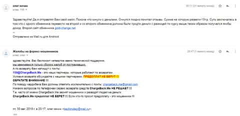 Жалоба на scam-обменник Голд Чандж