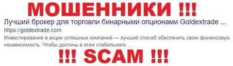 GoldexTrade - мошенническая организация, которая брала в доверительное управление деньги у своих клиентов и, по итогу, успешно обнуляла счета. Аферисты позиционировали себя как великобританская компания с большим опытом в управлением, правда без лицензии и работая в русско-говорящих странах. Шулера как брали в управление деньги, так и предоставляли торговать бинарными опционами с последующим сливом депозита. Просуществовав пару лет Голдекс Трейд схлопнулась вместе с деньгами кинутых клиентов.