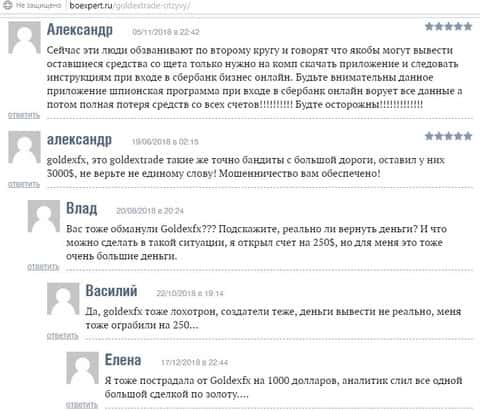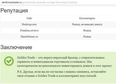- Блок негативных отзывов о мошеннической конторе Голдекс Трейд