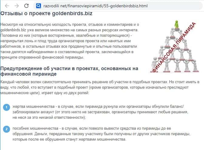 - Множество ресурсов Интернета считают игровой проект GoldenBirds финансовой пирамидой