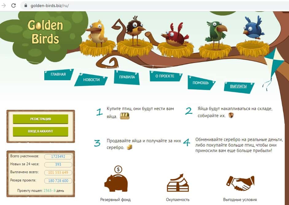 Игровой веб-сайт Golden-Birds Biz - это откровенный лохотрон и финансовая пирамида