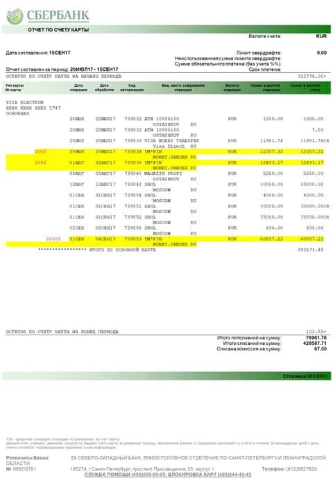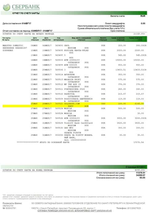 И еще один скриншот выписки с банковской карты клиента, отправившего деньги аферистам Голден ФХ.