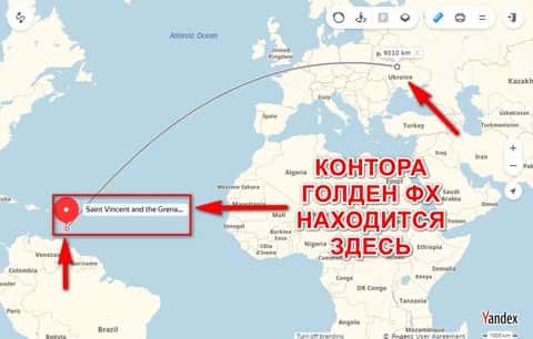 Как нам уже известно, жулики Golden-FX расположились как можно дальше от места совершения своих преступлений против своих клиентов. На их сайте есть адрес: Suite 305 Griffith corporate centre PO Box 1510 Beachmont Kingstown, St. Vincent and the Grenadines. Это есть оффшорная зона, куда обычно закидывают свои офисы форекс-мошенники подобны Голден ФХ.