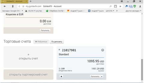 Также все эти транзакции можно проследить и в личном кабинете. История операций по счету клиент кухни Golden-FX полностью совпадает с заявками на вывод и вывод средств.