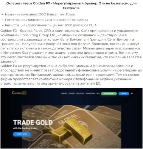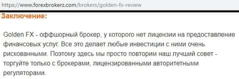 Форекс-кухня Голден ФХ работает без лицензии