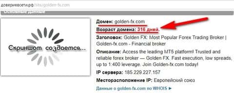 Конечно, если напрямую предъявить данную информацию шарлатанам Golden-FX, то они скажут, что вот они поменяли домен и обновили сайт. Как оказалось, домен golden-fx com имеет возраст от силы 300 дней и ни о каком там 2009 году и 2010 году основания, как пишут различные источники, да и сама шарага, речи идти вообще не может. Вы сами можете удостовериться в этом, пробив сайт на подлинность на информационном ресурсе довериевсети рф. После этого, даже не хочется дальше копать про этот скам информацию.