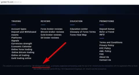 Информацию о руководстве кухни Golden-FX мы нашли только внизу главной страницы сайта, которая написана мелким шрифтом. Оказывается жулье принадлежит некой компании TBI Managment Group, которая как раз и находится по тому адресу в Гренадинах. Что это за контора неизвестно, есть только пока одна расшифровка аббревиатуры TBI - Traumatic brain injury, что никак не клеится с брокерской деятельностью. Тут два варианта - либо конторы не существует, либо о ней так мало информации, что нет адекватного объяснения этому.