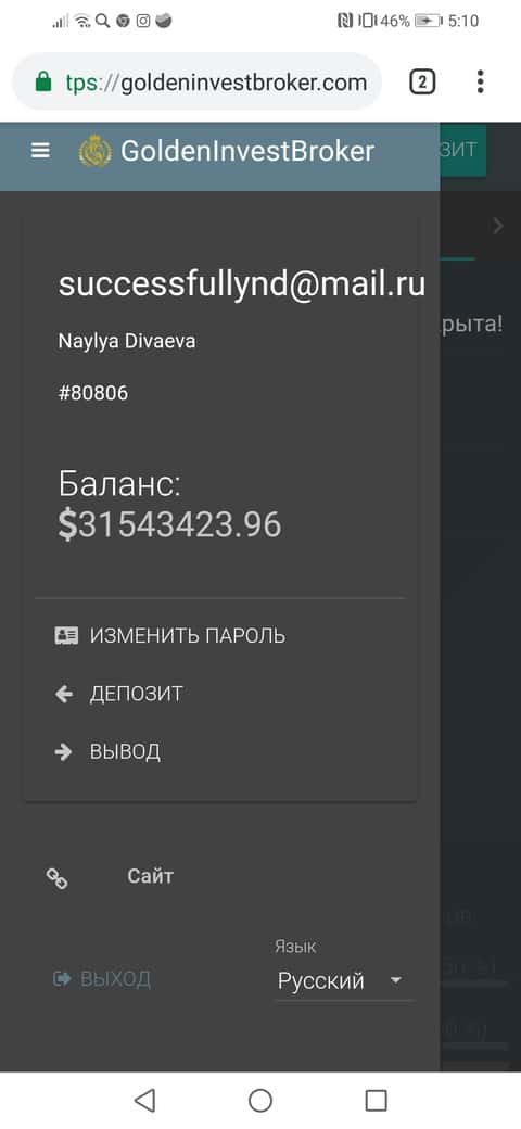 Golden Invest Broker кинули человека на 5 000 000 рублей