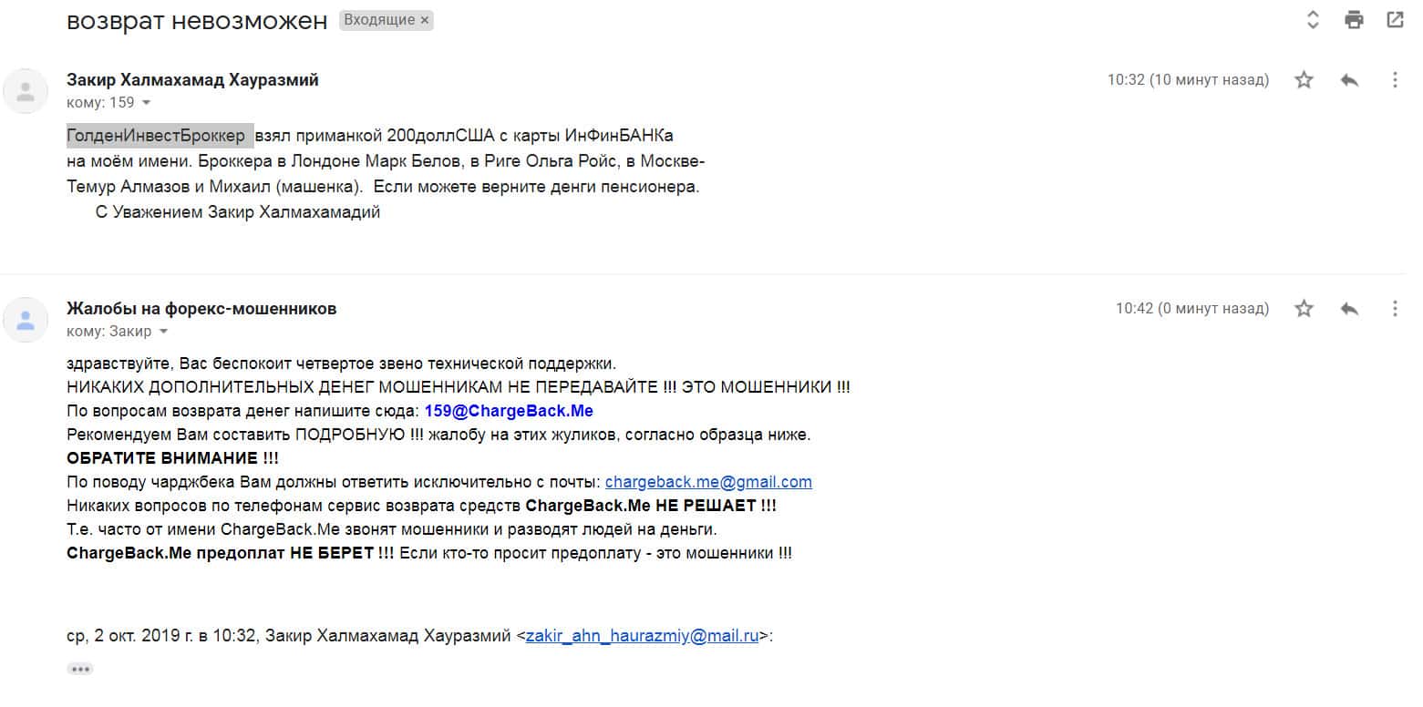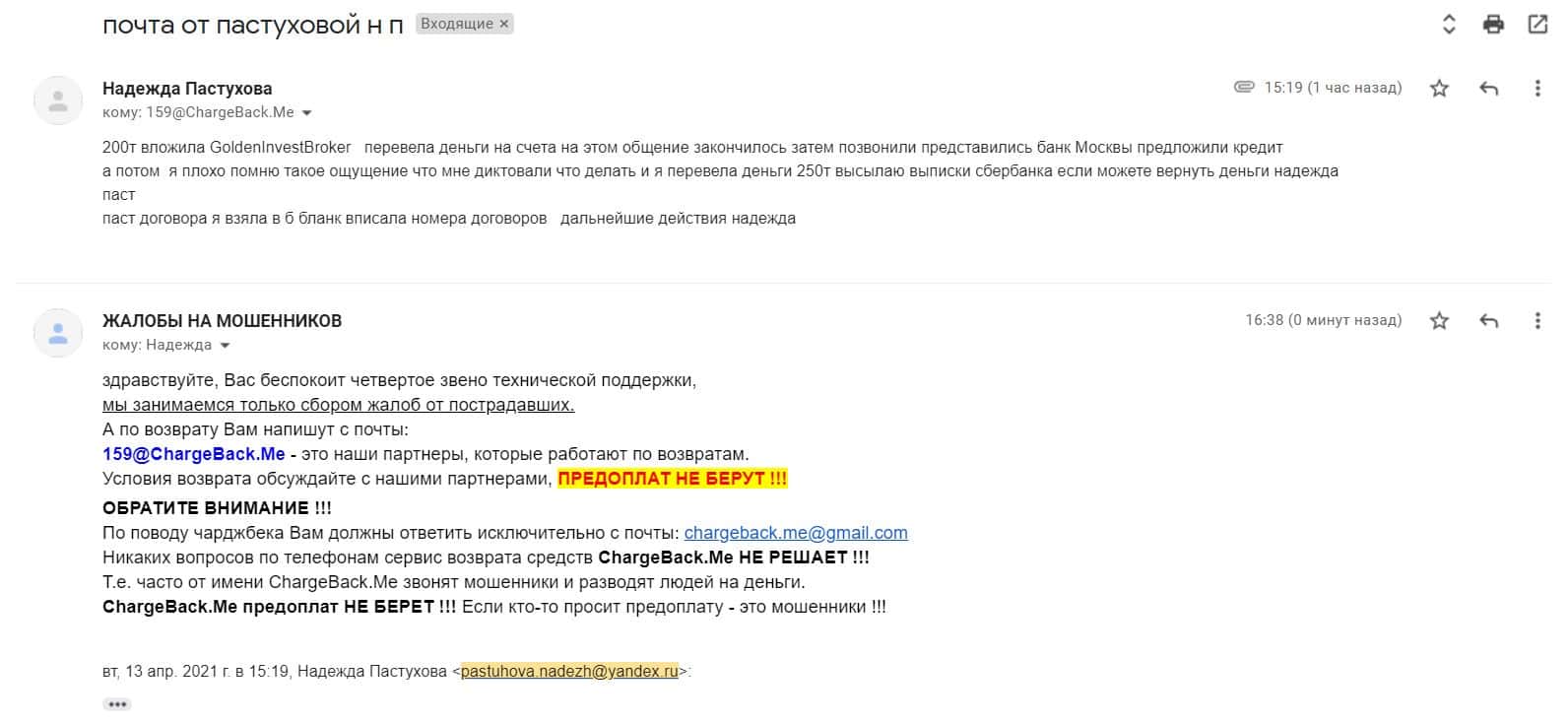 - Жалоба на мошенническую кухню Голден Инвест Брокер