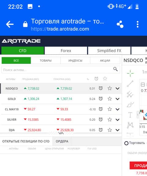 Ниже представлен торговый терминал конторы Аро Трейд, которым пользовался ее клиент. Торговля велась как на валютных парах, так и на CFD контрактах.
