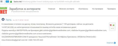 Жульбаны дилинговой конторы Голден Инвест Брокер забрали у своей очередной жертвы 7150 долларов