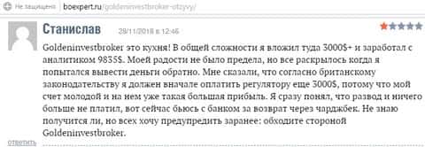 - Мошенники бинарного брокера Golden Invest Broker стянули у клиента свыше 3 000 долларов