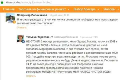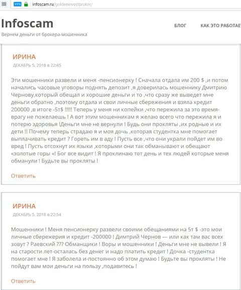 - Еще одна жалоба на шарлатанов Голден Инвест Брокер